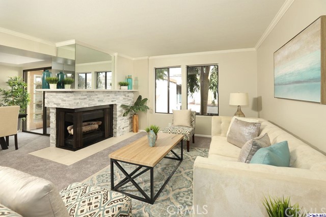 Welcome to this desirable Lake Balboa community that features a pool, gym and sauna! This 3BD/2BA unit is set back from the street offering a more quiet & private home in the community. Open floor plan features 12mm laminate wood flooring throughout, a semi-formal eating area, wall fireplace and crown moldings. Kitchen has granite counter tops, breakfast bar, wood cabinetry for ample storag.